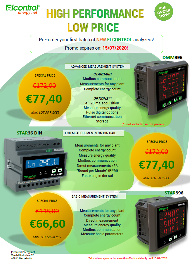 Pre-sale offer of brand new Elcontrol panel analyzers DMM396, STAR36DIN e STAR396. Validity...Special offer February 2020 650 kb 51 downloads