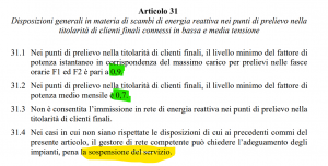 • Il fattore di potenza «istantaneo» (calcolato sui 15 minuti) in corrispondenza del massimo carico nelle fasce orarie F1 e F2 deve essere almeno pari a 0,9.