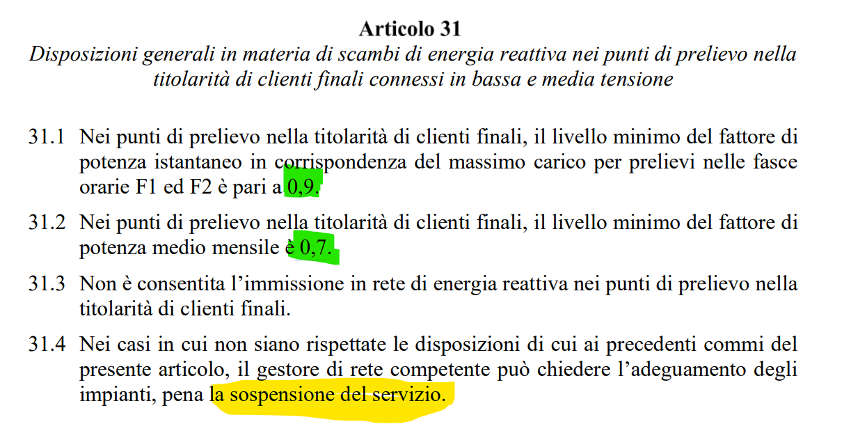 • Il fattore di potenza medio mensile deve essere almeno pari a 0,7.